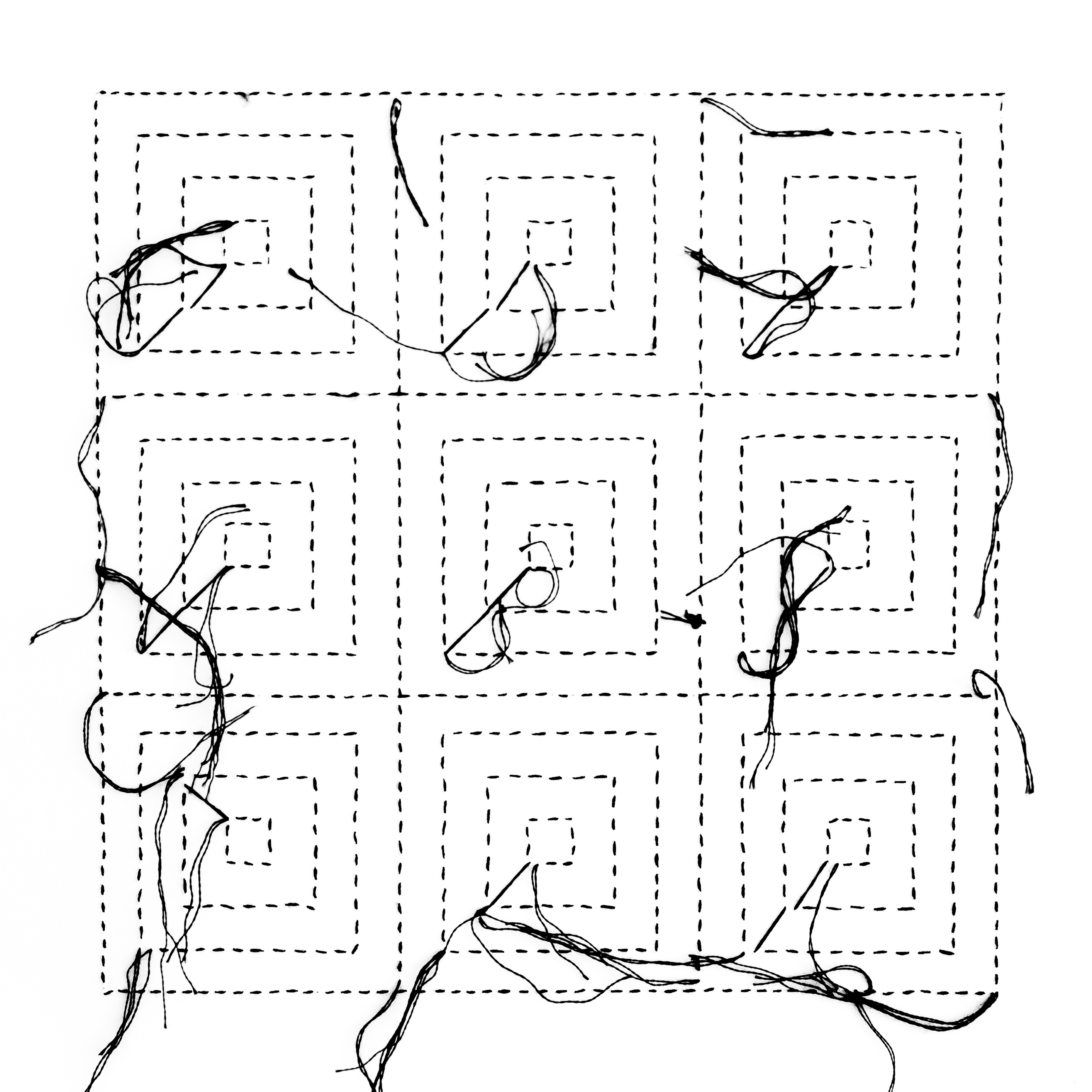 “Study of the fabric”. Tryptych. Embroidery on photographs. Back. Size: 20 cm x 20 cm (each)