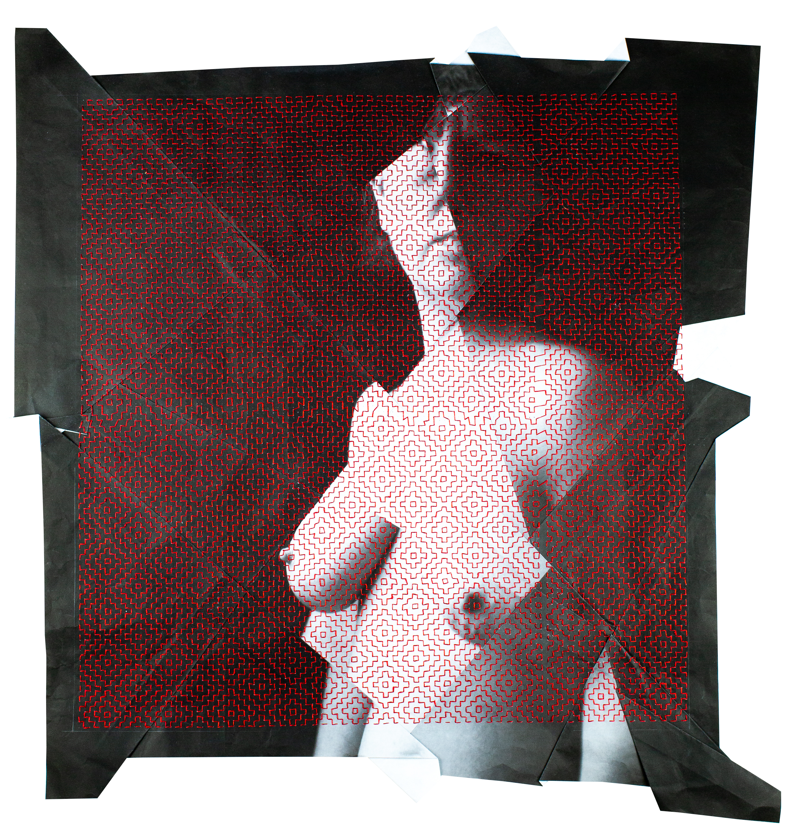“The radical power of optimism”. Tryptych. Folded and embroidered photographs. Back.