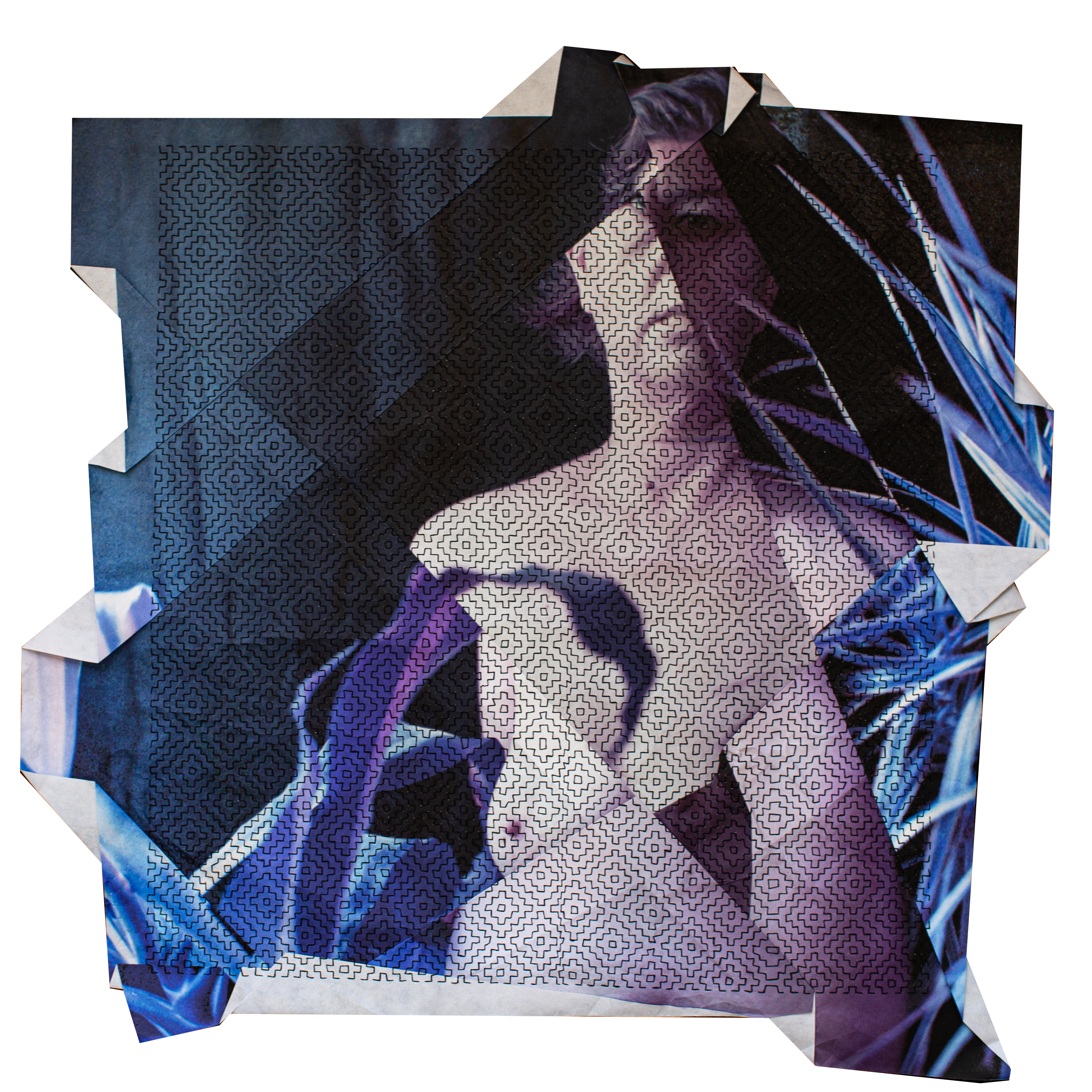 “The radical power of optimism”. Tryptych. Folded and embroidered photographs. Front.